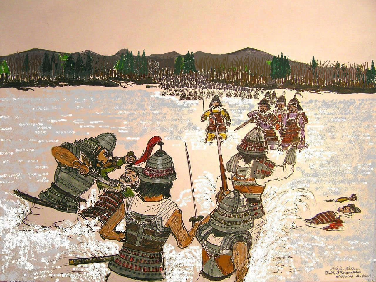 Meanwhile, the Emishi concentrated their forces on the east side of the Kitakami River. The Japanese commanders thought they did this because they were protecting the center of Isawa territory. The Japanese camped on the west side, so their plan was to cross the river.